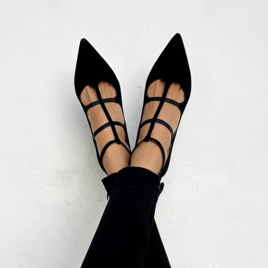 Las Bailarinas Bridget redefinen la sofisticación con un toque moderno. Con una punta afilada y delgadas tiras cruzadas, crean una silueta estructurada y elegante que se siente sin esfuerzo chic. La correa ajustable en el tobillo garantiza un ajuste seguro y cómodo, mientras que el bajo tacón cuadrado ofrece justo la cantidad adecuada de elevación para un uso durante todo el día. Fabricadas con materiales suaves y líneas limpias, estas bailarinas están diseñadas para complementar cada look, desde casual hasta refinado.